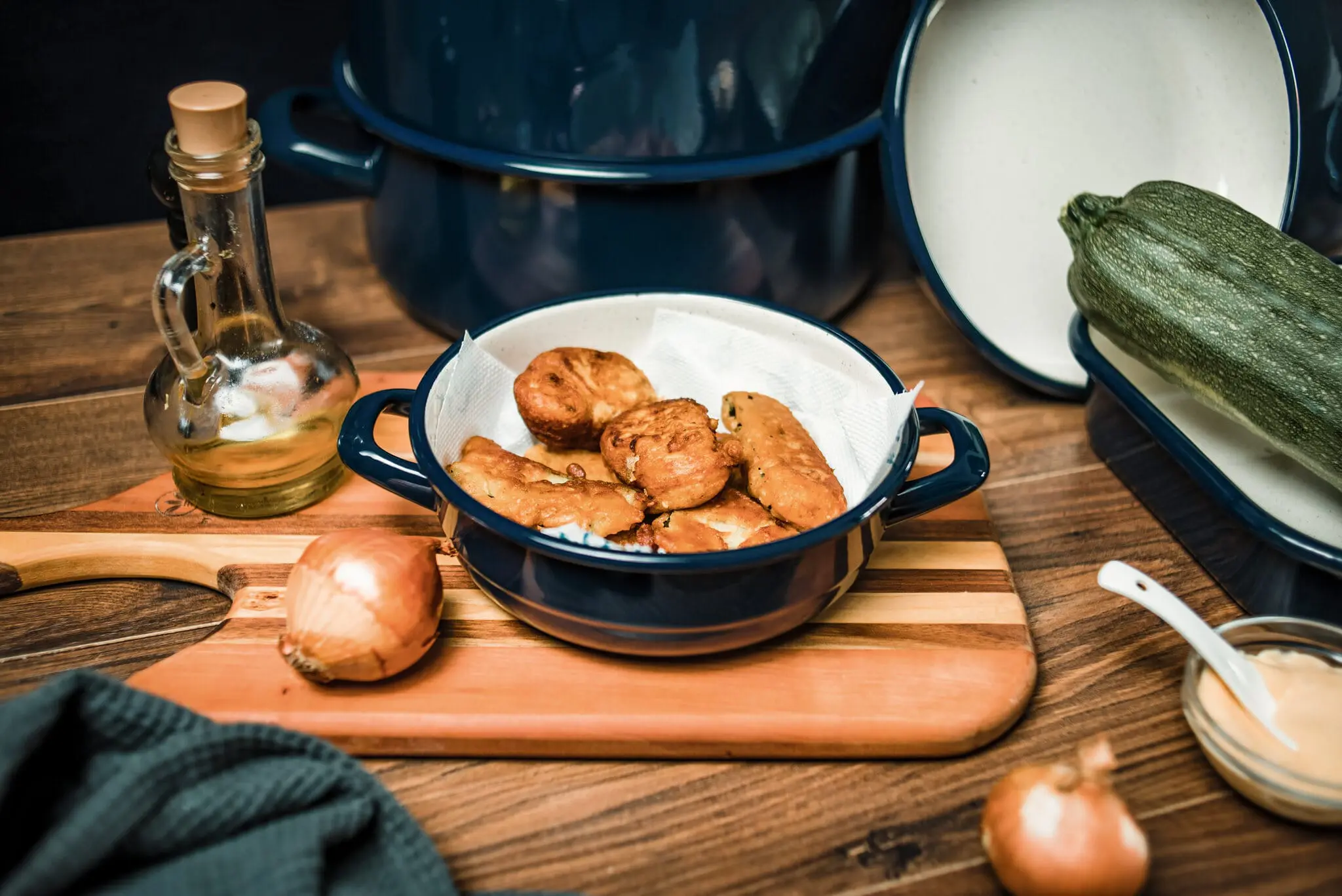Emaliowane naczynia są bezpieczne, nie wchodzą w reakcje z żywnością i nie zawierają szkodliwych substancji. Tata może gotować z dbałością o zdrowie – swoje i bliskich.