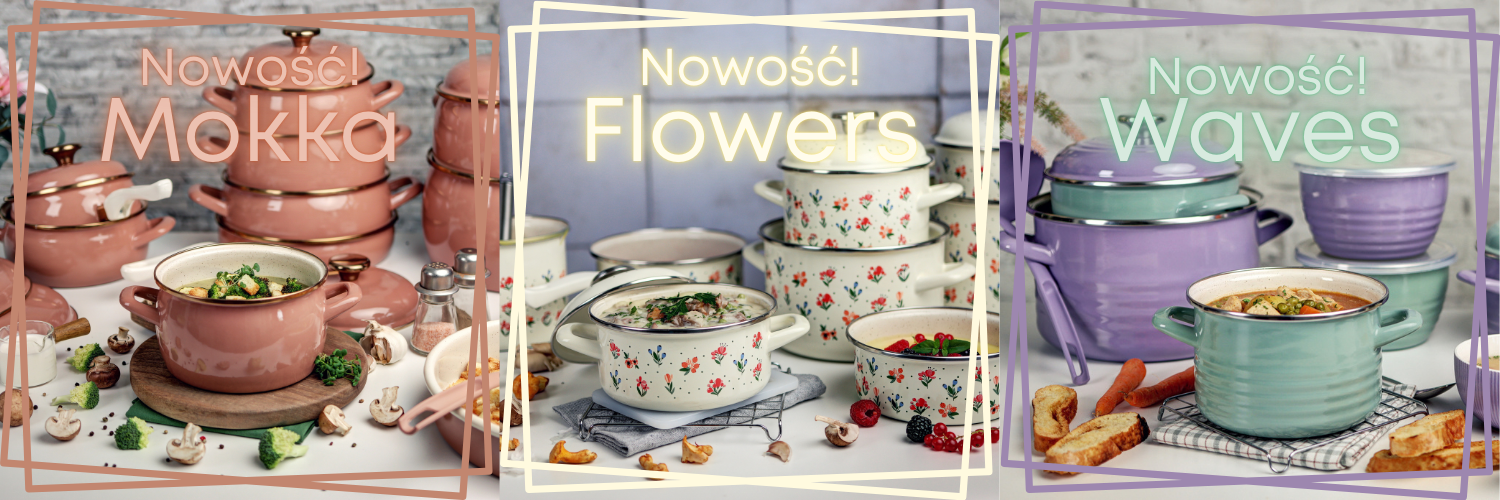 Z ogromną radością dzielimy się wiadomością, na którą czekało wielu naszych klientów – już na dniach w naszym sklepie online pojawią się trzy wyjątkowe kolekcje naczyń emaliowanych: Flowers, Waves i Mokka. Każda z nich to coś zupełnie nowego – świeże kolory, nowe kształty oraz design, który zachwyci zarówno miłośników klasyki, jak i nowoczesnych aranżacji kuchennych.